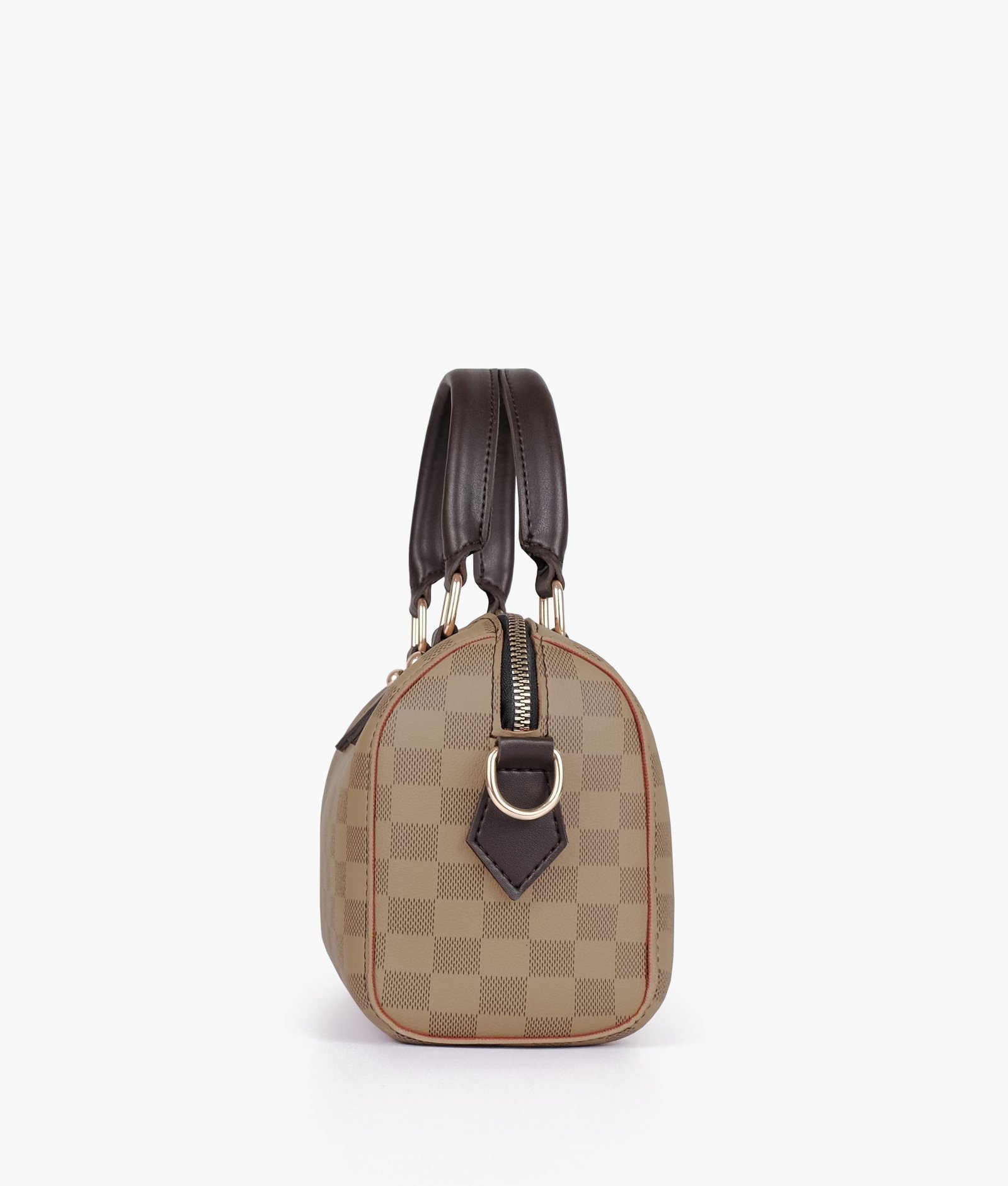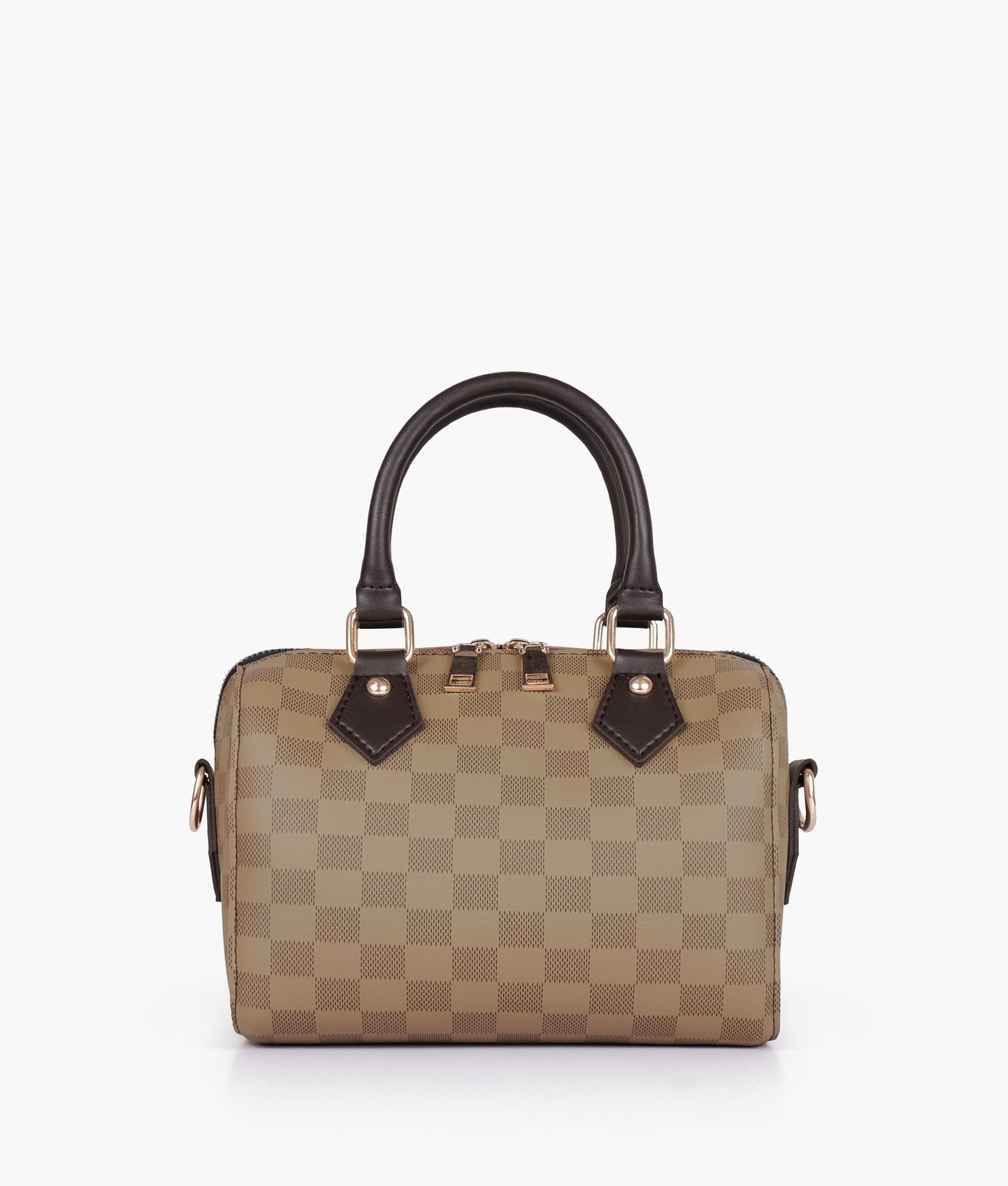 - Dual rolled-leather top handles for hand carry.